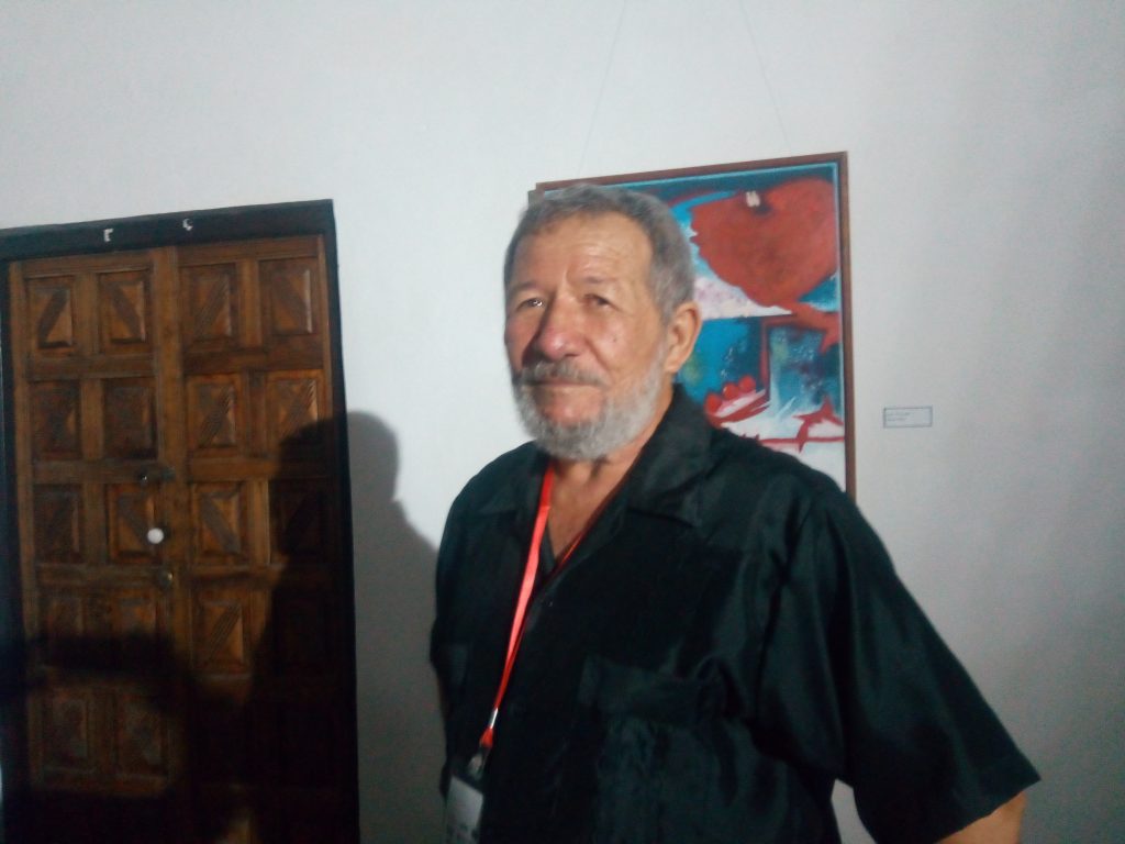 Acrílico sobre lienzo y otras técnicas emplea el inquieto artista, quién se reconoce como un campesino crecido cerca del mar y ambas geografías han estado como temas en su quehacer pictórico.