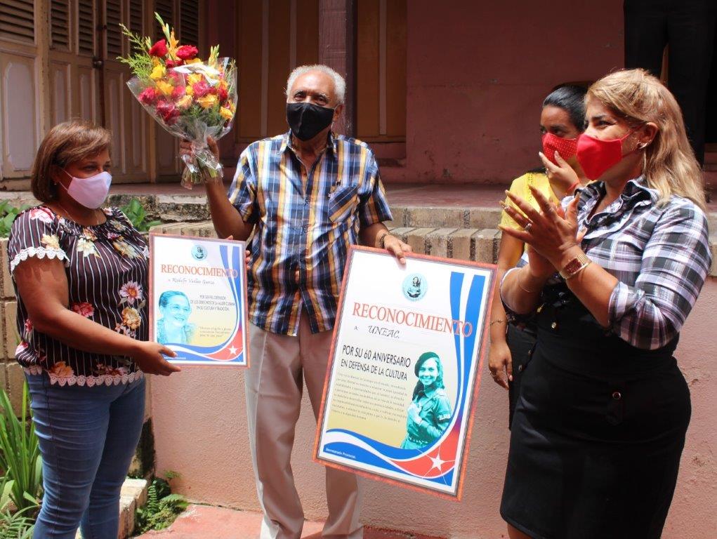 Cumpliendo con los protocolos sanitarios que exige la Covid- 19, las federadas santiagueras galardonaron a la Filial Provincial de la UNEAC por sus seis décadas, un hermoso gesto que agradeció su Presidente, el compositor de música popular Rodulfo Vaillant, resaltando el compromiso con la cultura cubana en donde tienen un papel protagónico las creadoras de Santiago de Cuba.