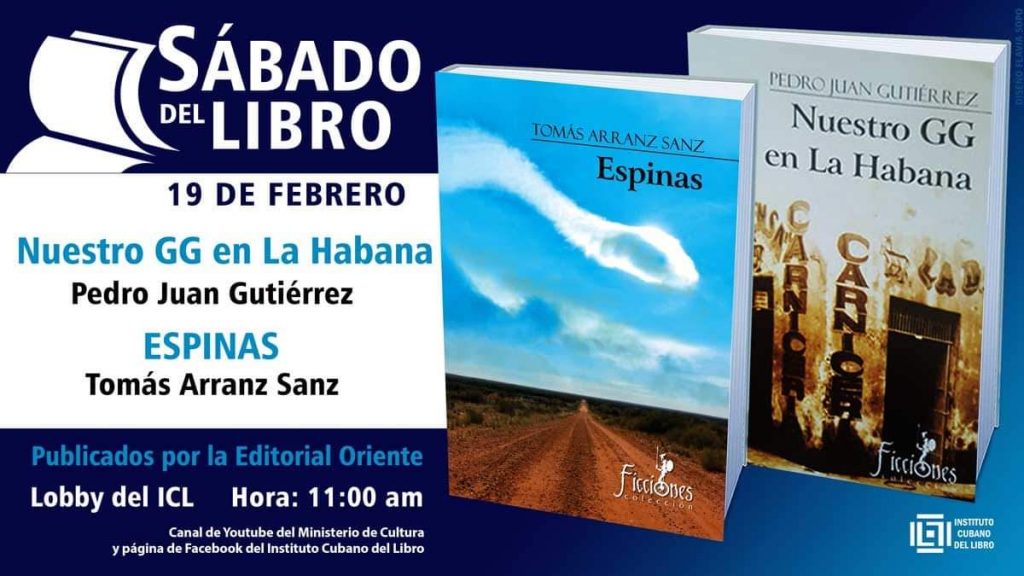 Los escritores Pedro Juan Gutiérrez (Matanzas, 1950) y Tomás Arranz Sanz (Valladolid, España, 1959) son los autores Nuestro GG en La Habana y Espinas respectivamente, protagonistas en la más reciente edición del espacio de promoción literaria Sábado del Libro, que tuvo como escenario el lobby del Instituto cubano del Libro y fueron presentadas por el poeta y narrador Alberto Marrero Fernández, Presidente de la Asociación de Escritores de la UNEAC; y el periodista y crítico literario Fernando Rodríguez Sosa.