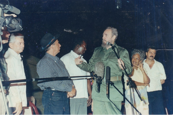 —No, en La Güinera también la hicimos en una construcción. Ahí fue Fidel a ver la obra. Los camerinos eran los almacenes de cemento y ladrillos, Fidel se divirtió mucho. Todo el trabajo salió fundamentalmente organizado y creado por Abel Prieto, que en aquel entonces era el presidente de la Unión de Escritores y Artistas de Cuba (Uneac), en coordinación con Nisia Agüero, que era la directora del Fondo de Bienes Culturales y a su vez promotora cultural. Abel llevaba la voz cantante de la dirección de este proyecto, era el que más entendía este proceso de investigación social, es un hombre muy culto y muy preparado.