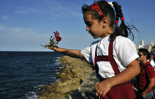 Cada 28 de octubre los niños cubanos lanzan flores al mar en honor a Camilo Cienfuegos. Foto: Ladyrene Pérez/ Cubadebate)