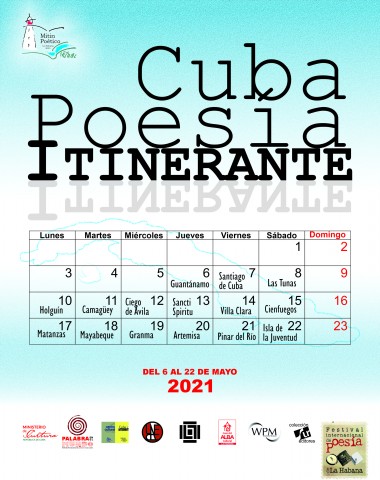 Dedicada este año al Aniversario 60 de la UNEAC y de las fundacionales Palabras de Fidel a los Intelectuales, como actividad principal de la Asociación de Escritores dentro de la jornada conmemorativa de la UNEAC, CubaPoesía Itinerante se desarrolla en todo el país del 6 al 22 de mayo de 2021, con participación de los más importantes escritores de las localidades.