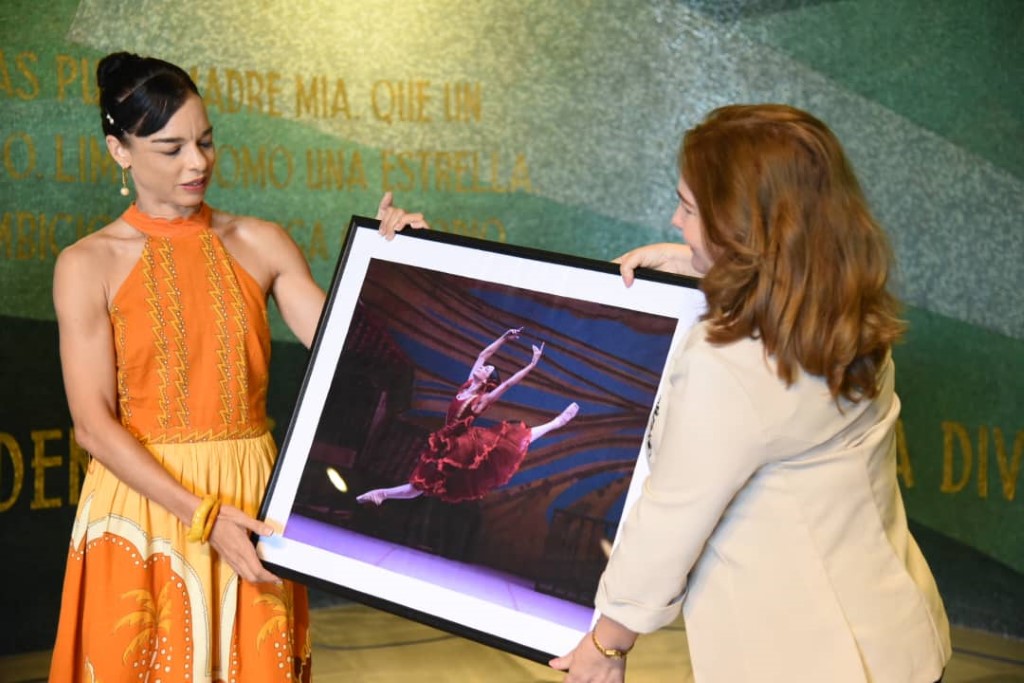 En el acto, efectuado en el Memorial José Martí, el ministro de Cultura Alpidio Alonso entregó un hermoso cuadro del artista Sandro González a la agasajada, directora del Ballet Nacional de Cuba, y un ramo de rosas evocador de su elogiado rol de Kitri en el ballet Don Quijote, que le ha valido reconocimiento mundial.