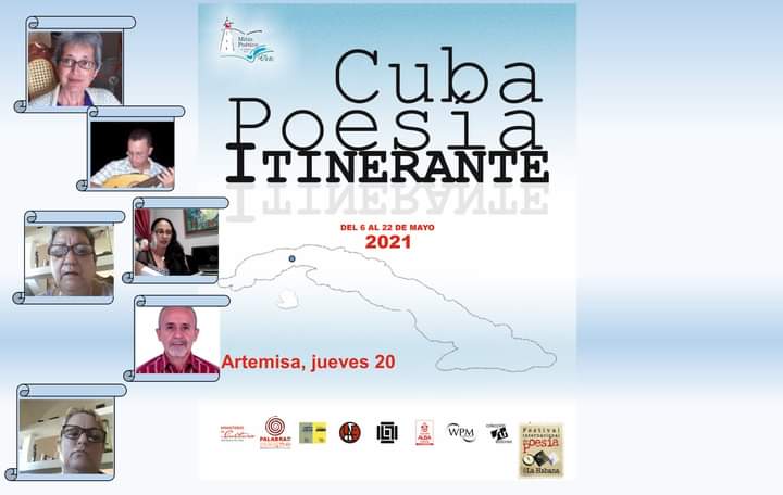 Luego de la itinerancia poética por Manzanillo, Bayamo y Pilón, con un total de 15 aristas invitados, Cubapoesía Itinerante llega este 20 de mayo a la provincia de Artemisa, donde a partir de las 2:00 p.m. se podrán disfrutar online los videopoemas de creadores como Juan José Jordán, Esperanza Iglesias, Guilda Guimeras Pareja, Saray Otaño, Edwin Vichot y Mireisy García.