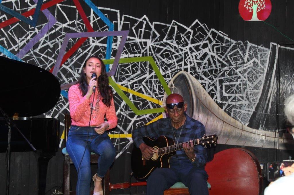 Los comienzos en el mundo artístico desde la niñez, la participación en las cantorías infantiles y en los Concursos Cantándole al Sol, fueron temas muy recurrentes en el diálogo con Giselle Lage, quien de igual manera les regaló su dulce voz a los periodistas de la mano del guitarrista acompañante Gabino Jardines.