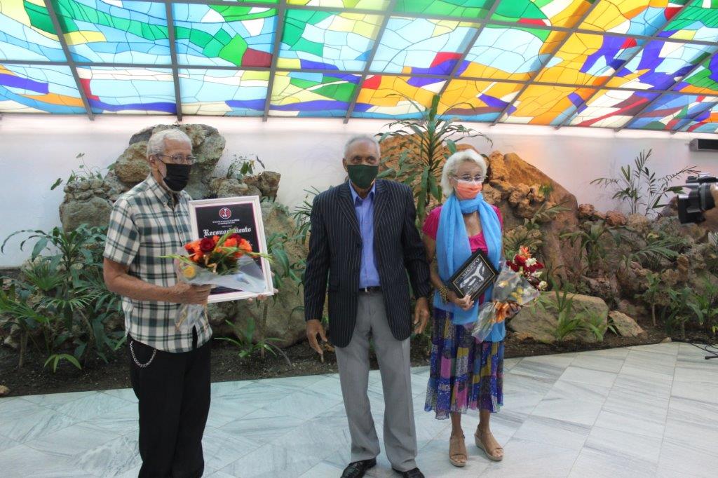 La Gobernadora de Santiago de Cuba, Beatriz Jhonson Urrutia, asumía las expresiones de agradecimiento para los hombres y mujeres que pertenecen a la UNEAC en esta sur-oriental provincia, distinguidos con el sello por las seis décadas de la organización, que agrupa a los artistas y escritores de la Mayor de las Antillas, en una gratulación que también sirvió para reconocer al actor Dagoberto Gainza, Premio Nacional de Teatro 2021, junto a su esposa la actriz Nancy Campos, Premio Honorífico Caricato.