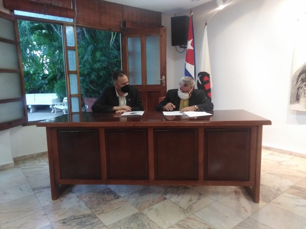 El presidente de la Unión de Escritores y Artistas de Cuba (UNEAC), Luis Morlote Rivas, y el de la Unión Nacional de Historiadores de Cuba (UNHIC), Jorge Luis Aneiros Alonso, firmaron este jueves un convenio para desarrollar acciones conjuntas a nivel nacional y territorial, enfocadas en la protección de la memoria histórica y el patrimonio de la nación.