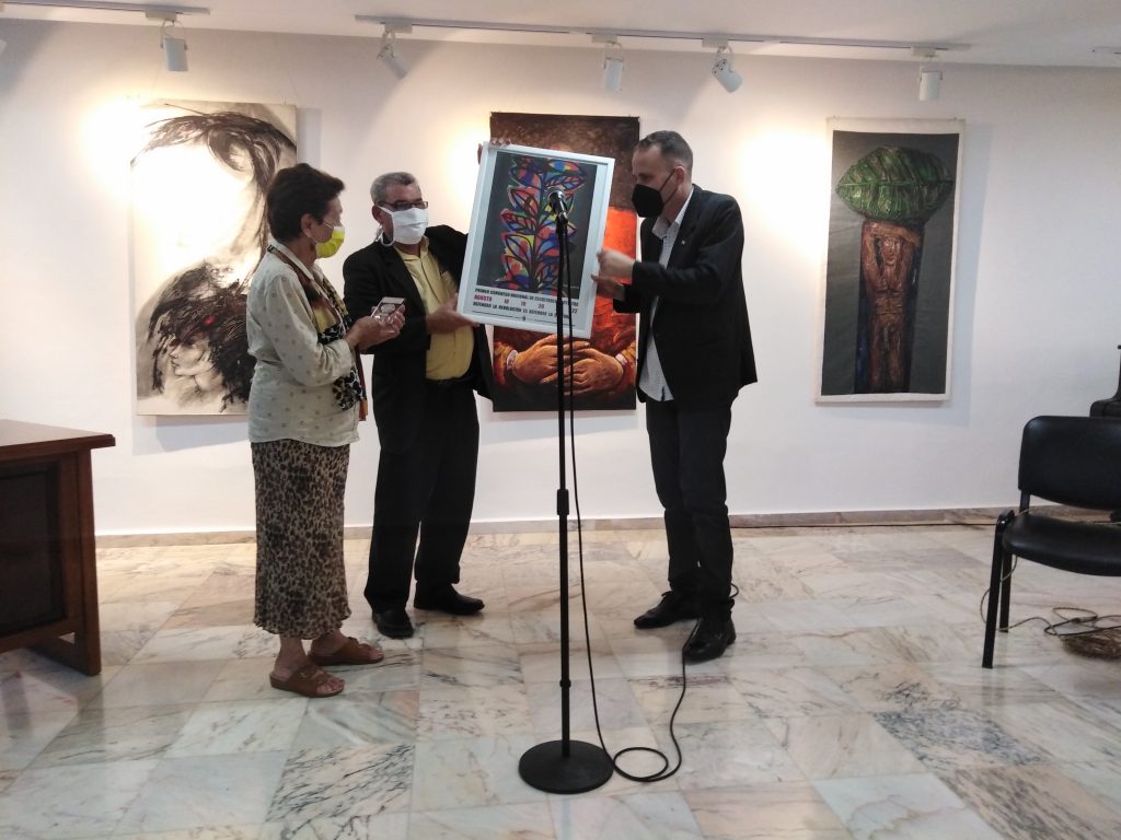 Durante el encuentro en la sala Rubén Martínez Villena, se le entregó a la UNHIC el Sello Conmemorativo Aniversario 60 de la UNEAC, por su papel en la preservación de la memoria histórica para las generaciones presentes y futuras.