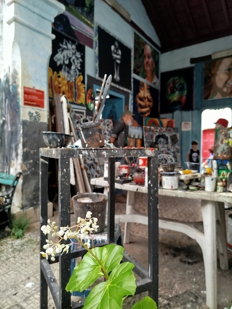 El artista reflexiona sobre las condiciones en las que trabaja. Su taller, ubicado en un edificio antiguo de Camagüey, es un espacio modesto pero vital para su creatividad. “La gente dice que está sucio, desordenado, pero esto es un taller, no una galería de arte”, comenta. A pesar de las limitaciones —humedad, goteras y falta de recursos—, Jover sigue creando.