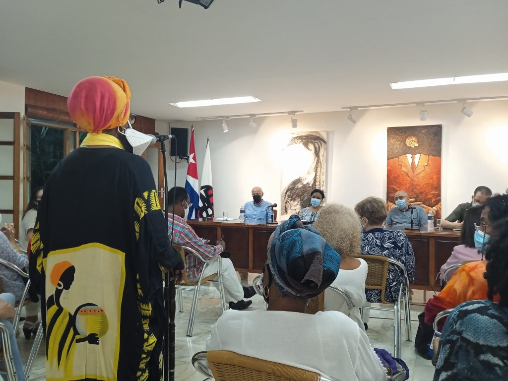 «En este color cubano que tenemos todos, en la unidad está la manera de enfrentar los desafíos» afirmó la diputada a la Asamblea Nacional del Poder Popular en el encuentro realizado en la sala Villena de la Unión de Escritores y Artistas de Cuba (UNEAC), acompaña por el presidente de la organización, Luis Morlote Rivas, el viceministro de Cultura, Fernando Rojas, y el presidente de la Comisión Aponte, Pedro de la Hoz.