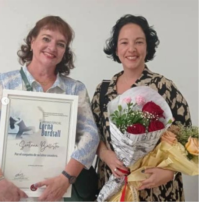 “Lo recibí con orgullo y satisfacción no solo por ser conferido por la UNEAC, organización emblemática en materia de cultura y creación en nuestro país; sino por lo que significa en el universo danzario ya que Lorna Burdsall (1928-2010) fue una gran bailarina, maestra y coreógrafa, símbolo de toda una historia para respetar y aprender”.