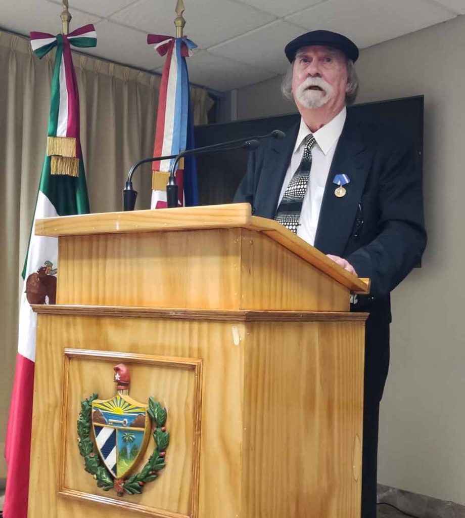 En una sencilla ceremonia en la sede diplomática, el viceministro de Cultura Fernando Rojas y el embajador Marcos Rodríguez, entregaron la condecoración al autor de obras tan emblemáticas como el vitral Sol de América Revolución, ubicado en el Palacio de la Revolución hace más de 40 años.