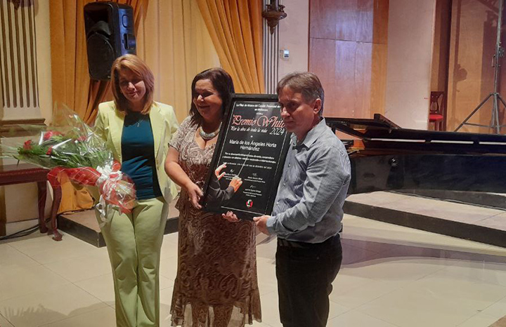 Le daré mi vida completa al piano y al arte de enseñar, mis más expresivas gracias a mi Matanzas querida, a mis maestros, a Elvira Santiago, al público que me sigue y a mi madre, expresó hoy María de los Ángeles Horta Hernández, galardonada con el Premio White 2024 por la Obra de toda la Vida.
