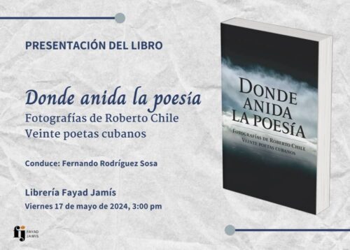 La librería Fayad Jamís, en la habanera calle Obispo, se presentó el libro Donde anida la poesía, Fotografías de Roberto Chile-Veinte poetas cubanos, con dos decenas de instantáneas acompañadas por igual cantidad de poemas.
