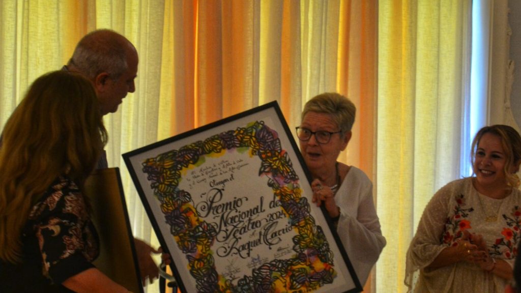 Coincidiendo con el pistoletazo de arrancada del nuevo curso escolar, se hizo entrega del Premio Nacional de Teatro 2024 a Raquel Carrió Ibietatorremendía en la Universidad de las Artes ISA. Acompañó la entrega el ministro de Cultura Alpidio Alonso Grau, la vicepresidenta de Cultura Lillitsy Hernández Oliva, la presidenta de la UNEAC Martha Bonet, Rachel García Heredia, presidenta del Consejo Nacional de las Artes Escénicas, vicepresidentes del Consejo de las Artes Escénicas y otros Premios Nacionales de Teatro y Danza.