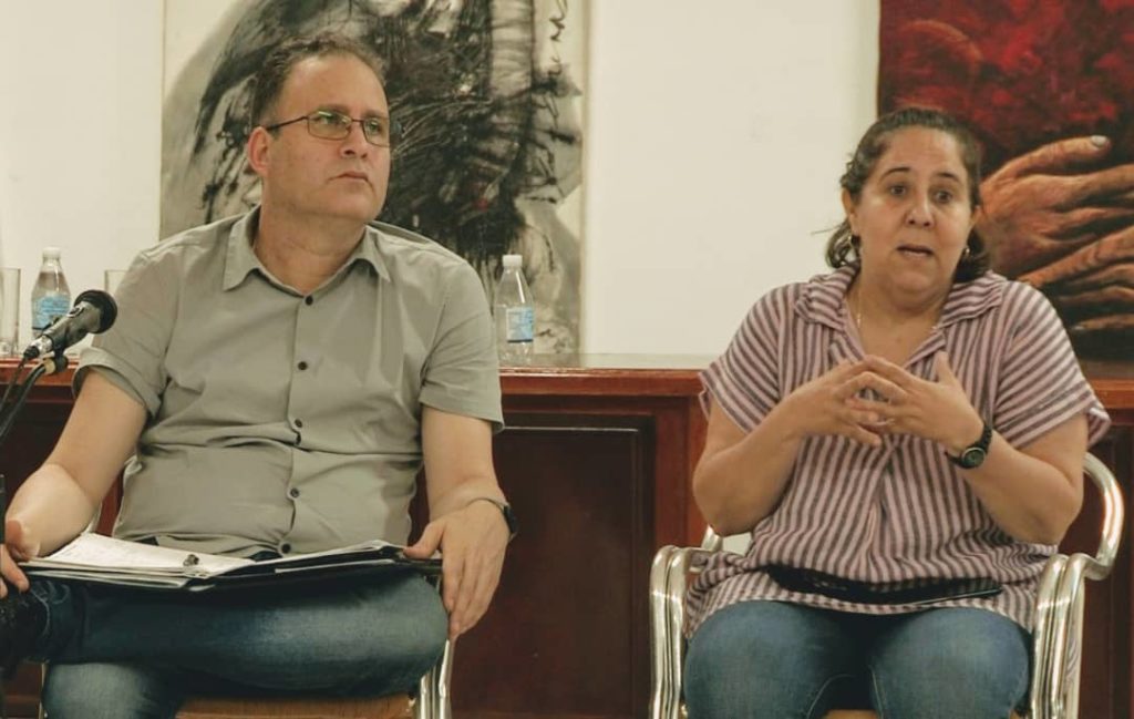 Liudmila Álamo Dueñas, vicejefa del Departamento Ideológico del Comité Central del Partido junto a Luis Morlote Rivas, quien ocupó la presidencia de la UNEAC durante los últimos cinco años.