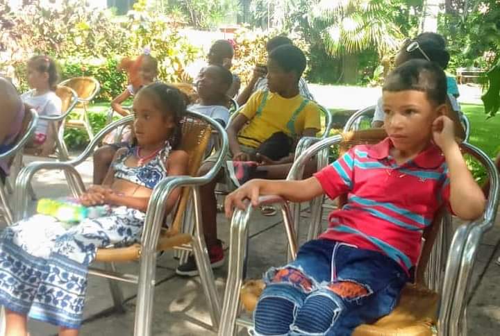 Música y juegos permitieron a Rita del Prado interactuar en la UNEAC con un público infantil ya asiduo a cada una de las propuestas del espacio de verano “Con la esperanza del mundo”. En este encuentro, como en los anteriores, los niños también visitaron la exposición de Zenén Calero “Con el pincel de los otros” en la Galería Villa Manuela y disfrutaron la proyección de dibujos animados cubanos en la Sala de Video Caracol.