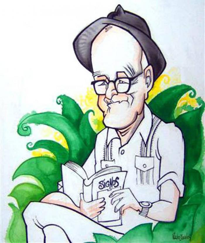 Raro fue Feijóo, y por ello él mismo. Llegar pulcramente acicalado a un espacio literario y llevar en sus manos una jaba de yute impropia para la ocasión; único en el trato con los otros (a una embarazada desconocida le recomendó comer bistec de nalga de pulga para que el niño le saliera sano); anotador de sus ideas en trocitos de papel, que iría botando poco a poco en un determinado paseo para que nadie se las robara; considerado a sí mismo un sensible zarapico (ave de largas patas que no se enloda nunca); surrealista irremediable y natural.