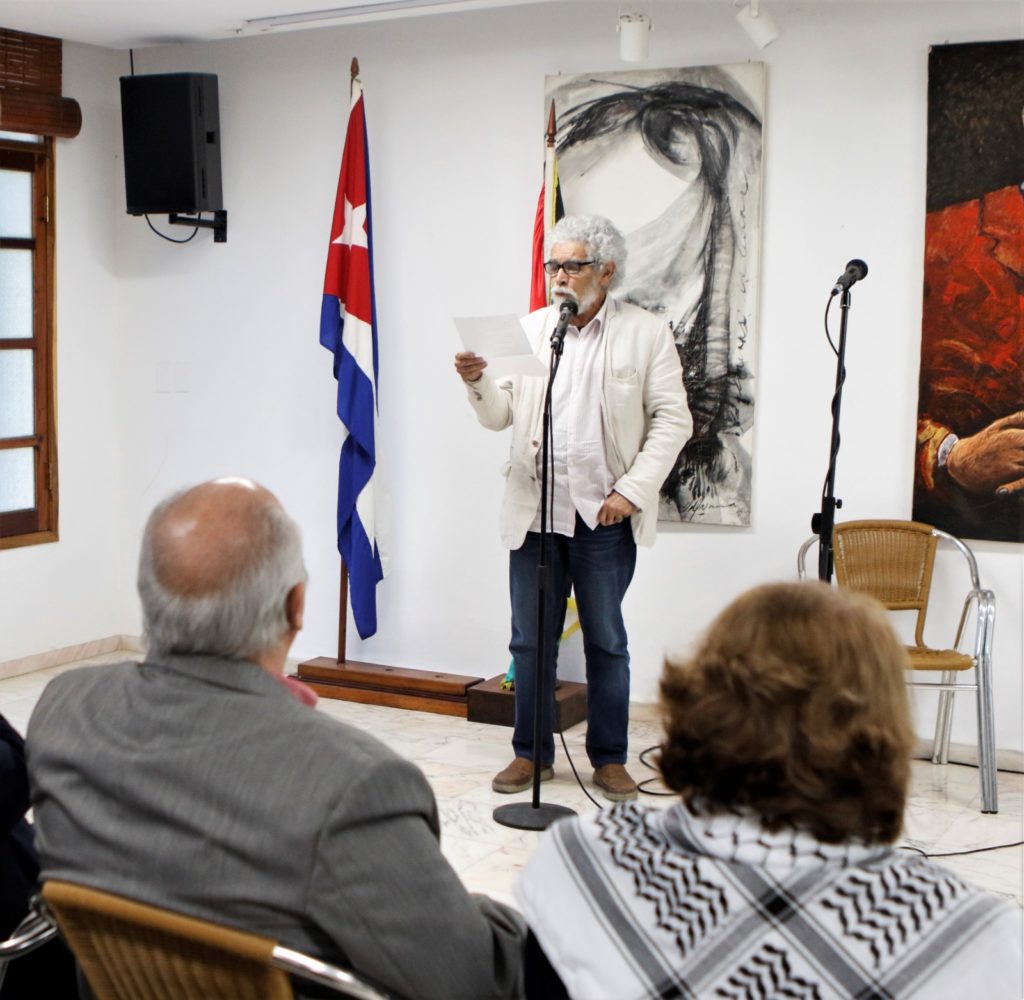 En el contexto del homenaje el poeta palestino Abdel Nasser H.A Alaraj, ratificó la voluntad de su pueblo de vivir en paz y tranquilidad, y desde la tierra de Fidel Castro y Che Guevara y a la que vino más de cuatro veces el líder Yasser Arafat, condenó ante el mundo la injusticia de la masacre, contabilizando más de 15 000 000 de palestinos refugiados desde 1948 en Siria, Líbano y otros territorios, la muerte de unos aproximadamente 11 000 niños, más de 135 periodista, innumerables civiles, médicos, enfermeras así como la destrucción de hospitales en Gaza y Cisjordania.