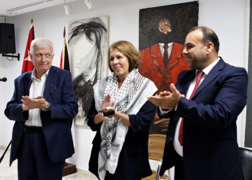 El que escribe resiste y el que resiste vence, afirmó Murad Al-Sadani, secretario de la Unión de Escritores de Palestina en la emblemática sala Villena de la organización, donde tuvo lugar el tributo al heroico y valiente pueblo, escenario ideal también para denunciar por artistas de ambos países la limpieza étnica que efectúa el Estado de Israel, así como el secuestro de su cultura.