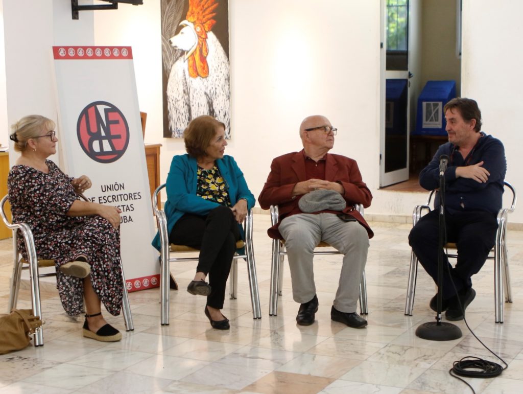 La presidenta de la UNEAC Marta Bonet recibió al poeta, crítico literario y ensayista en la sala Villena de la sede nacional de la organización, luego de un recorrido por espacios emblemáticos como el Hurón Azul y la galería Villa Manuela, donde pudo apreciar la muestra “Entelequias” del artista visual Duvier del Dago.
