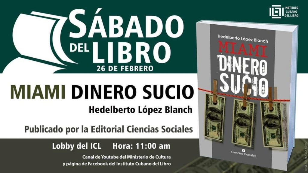 La última edición del espacio de promoción literaria Sábado del Libro, correspondiente al mes de febrero de 2022, tuvo como principal atractivo la presentación del libro Miami, dinero sucio, publicado por la Editorial de Ciencias Sociales y cuyo autor, el periodista Hedelberto López Blanch, compartió junto a dos conocedores del tema: Ernesto Soberón, Embajador y Director General de Asuntos Consulares y Atención a Cubanos Residentes en el Exterior del MINREX, y Gerardo Hernández Nordelo, Héroe de la República de Cuba.