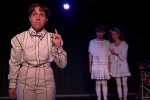 Arianna Delgado, siempre magistral asume el padre de las niñas (que alternan cuatro actores) mientras Sindy Rosario se desdobla en varios personajes.