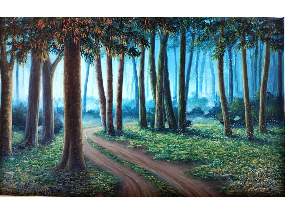 En esta ocasión el encierro, generado por la inclemente pandemia que nos azota, hizo acudir a este artista de la plástica a las reminiscencias de lo primero que vieron sus ojos en el entorno campestre donde nació, conformado por ríos y arroyuelos, árboles, floresta, caminos, veredas y el arrullo del viento en su eterna controversia con el silencio. Si me precisaran a sintetizar en pocas palabras este conjunto de cuadros de formato menor, realizados con la técnica del óleo sobre tela, diría que se trata de un viaje a la nostalgia y que cada paisaje representa un fotograma de intensos momentos vividos por este hombre que ahora acude a su talento en el manejo de los colores para dejarnos un testimonio inmortal de sus vivencias.