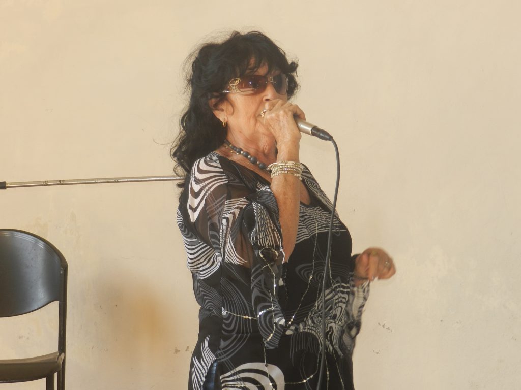Brillan sus ojos. Vibra su afinada voz de la que salen hermosas melodías. Canta con la voz dulces y limpias que embriaga a los espectadores. Canta con el alma y el corazón. Cada tonada esta acompañada con elegantes gestos de su rostro y movimientos de las manos. Se desplaza por el escenario para lograr la intimidad con el público, al que regala, humildemente, una sonrisa y una reverencia.