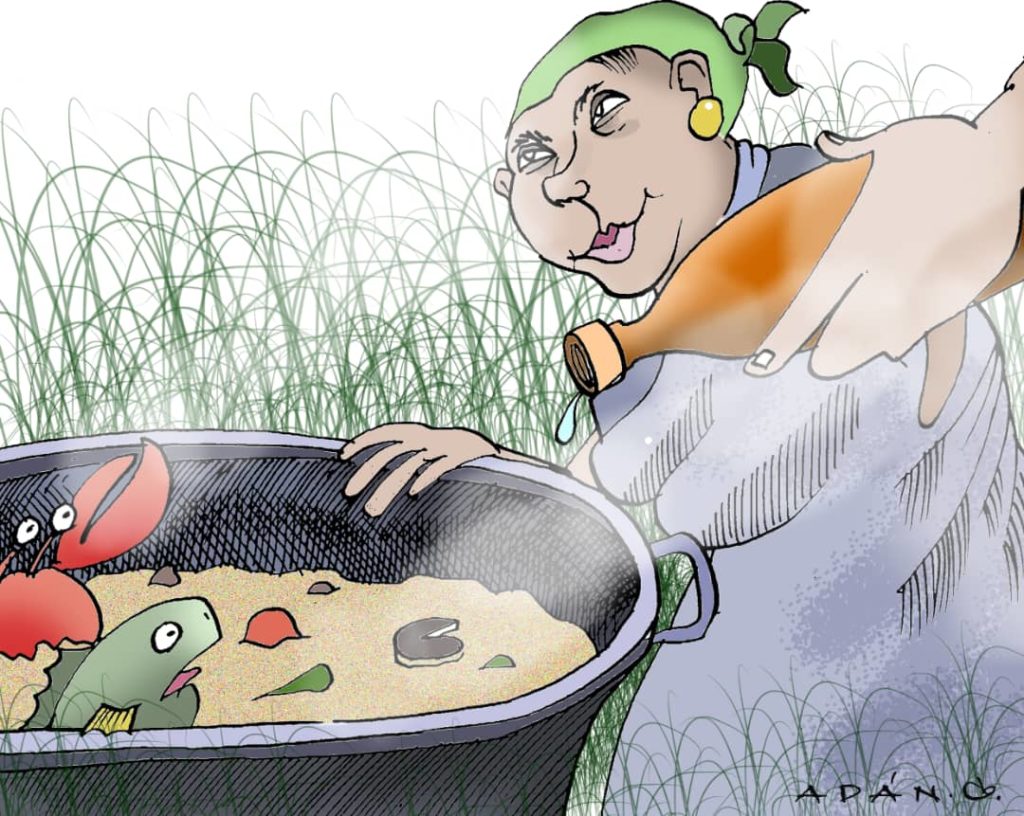Era una verdadera especialista. Y después de preparar el sofrito, plantó la caldera a eso de las once de la mañana, mientras el grupo de hambrientos comensales tomábamos una meneá (aguardiente con azúcar prieta) para entretener el estómago.