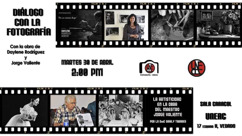 Daylene Rodríguez, quien se desempeña como fotógrafa profesional y colabora, además, con diferentes medios de prensa, hablará de su obra y las motivaciones que la mueven en su quehacer creativo; mientras que la DraC. Sahily Tabares, periodista, crítica cultural y miembro de la organización de escritores y artistas, disertará sobre la artisticidad y permanencia de la obra del reconocido fotógrafo Jorge Valiente.