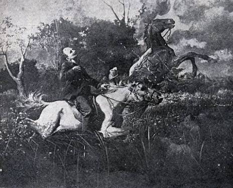 En 1918 el joven artista Esteban Valderrama viajó hasta el mismo escenario del aciago día en Dos Ríos, se le facilitó asesoría, quiso captar el ambiente, la luz del lugar para reflejar el momento de la caída en combate de Martí. Pintor académico, compuso un lienzo que muestra al Apóstol, con traje oscuro, cuando se lleva una mano al pecho, aún sosteniendo las riendas del caballo a galope pero a punto de caer. La crítica fue despiadada y la calificó de obra artificiosa. El artista la destruyó. Quedó su constancia porque había sido publicada en la prensa. Y aún ahora, sigue recordándose aquella pintura de Valderrama.